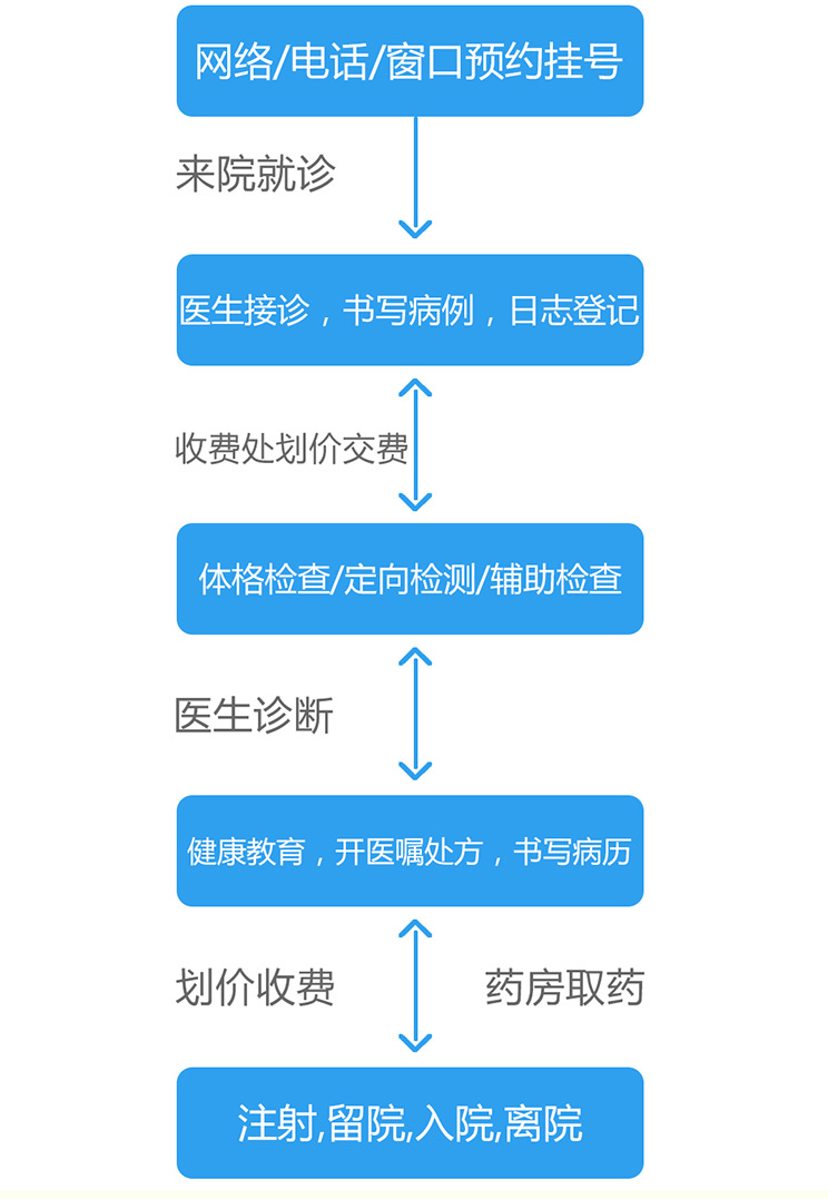 2、挂号:请先在一楼导医台填写病历,并确定就诊科室,导医将引导您挂号。